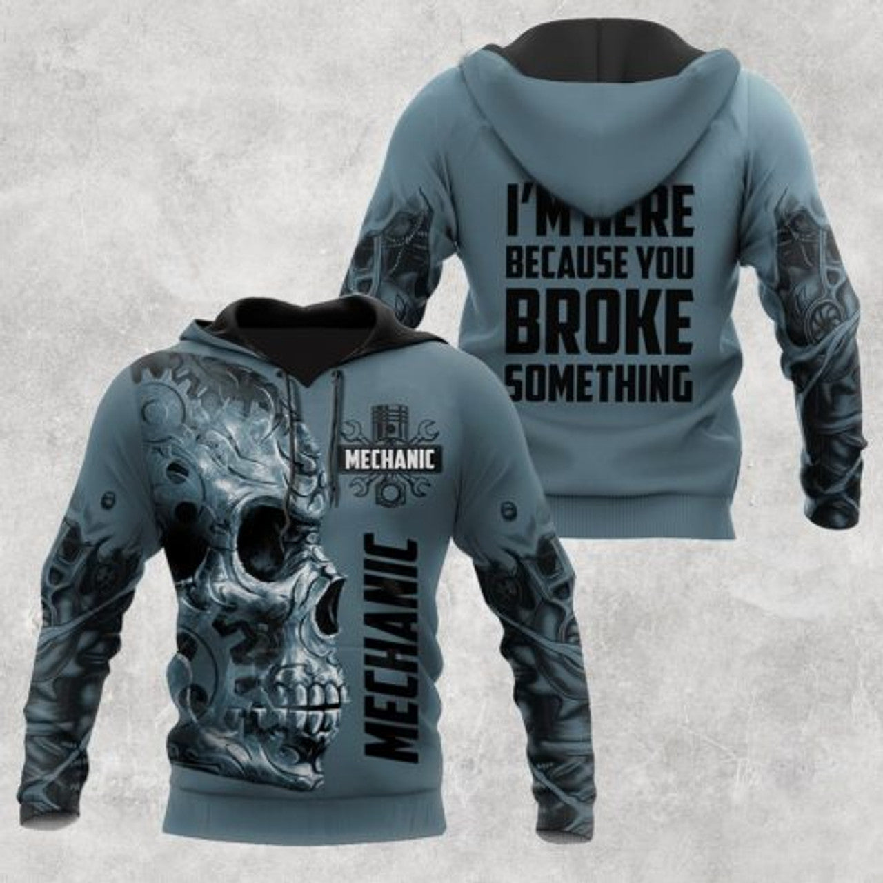 FUNSTUFFPRINT Mechanic Skull 3D Hoodie Im Here Because You Broke Something 3D Hoodie and Zip Hoodie