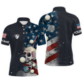 FUNSTUFFPRINT Men American Flag Golf Skull With Golf Ball Polo Shirt Size S-5XL