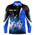 FUNSTUFFPRINT Men Bowling Long Sleeve Polo Shirts, Custom Blue Flame Bowling Ball And Pins Team League Bowler Jerseys
