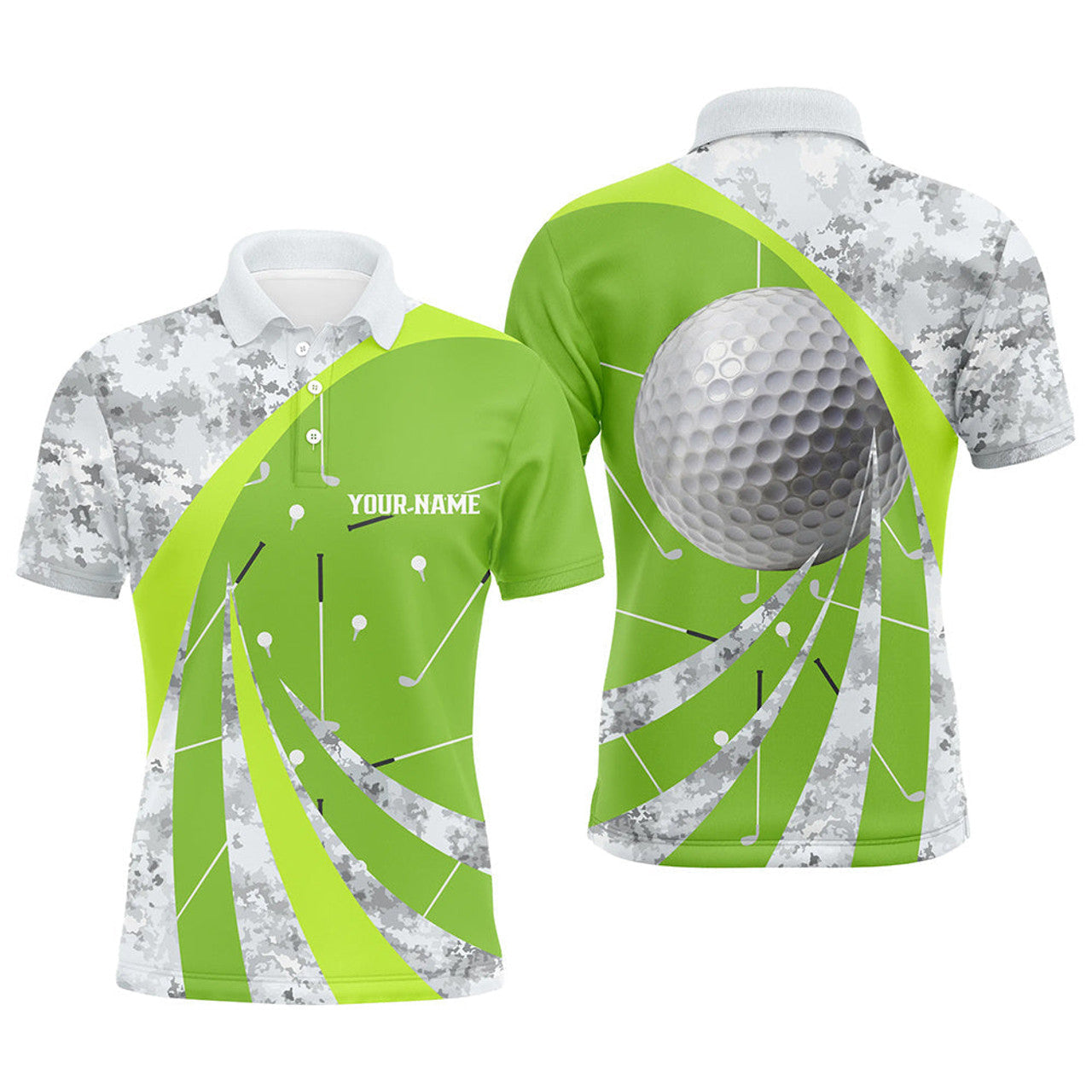 FUNSTUFFPRINT Mens Golf Polo Shirts Custom Green Golf Clubs Pattern, Personalized Golf Gifts For The Golfers Polo Shirt Size S-5XL