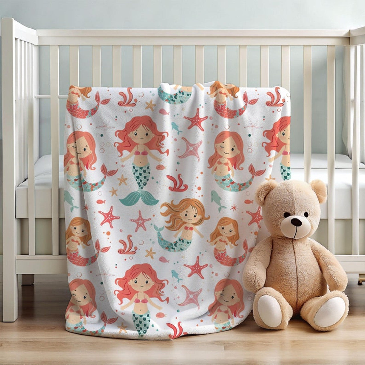 FUNSTUFFPRINT mermaid baby blanket, soft fleece blanket for baby, cute christmas gift for new mom, ocean theme nursery, coastal baby shower decor