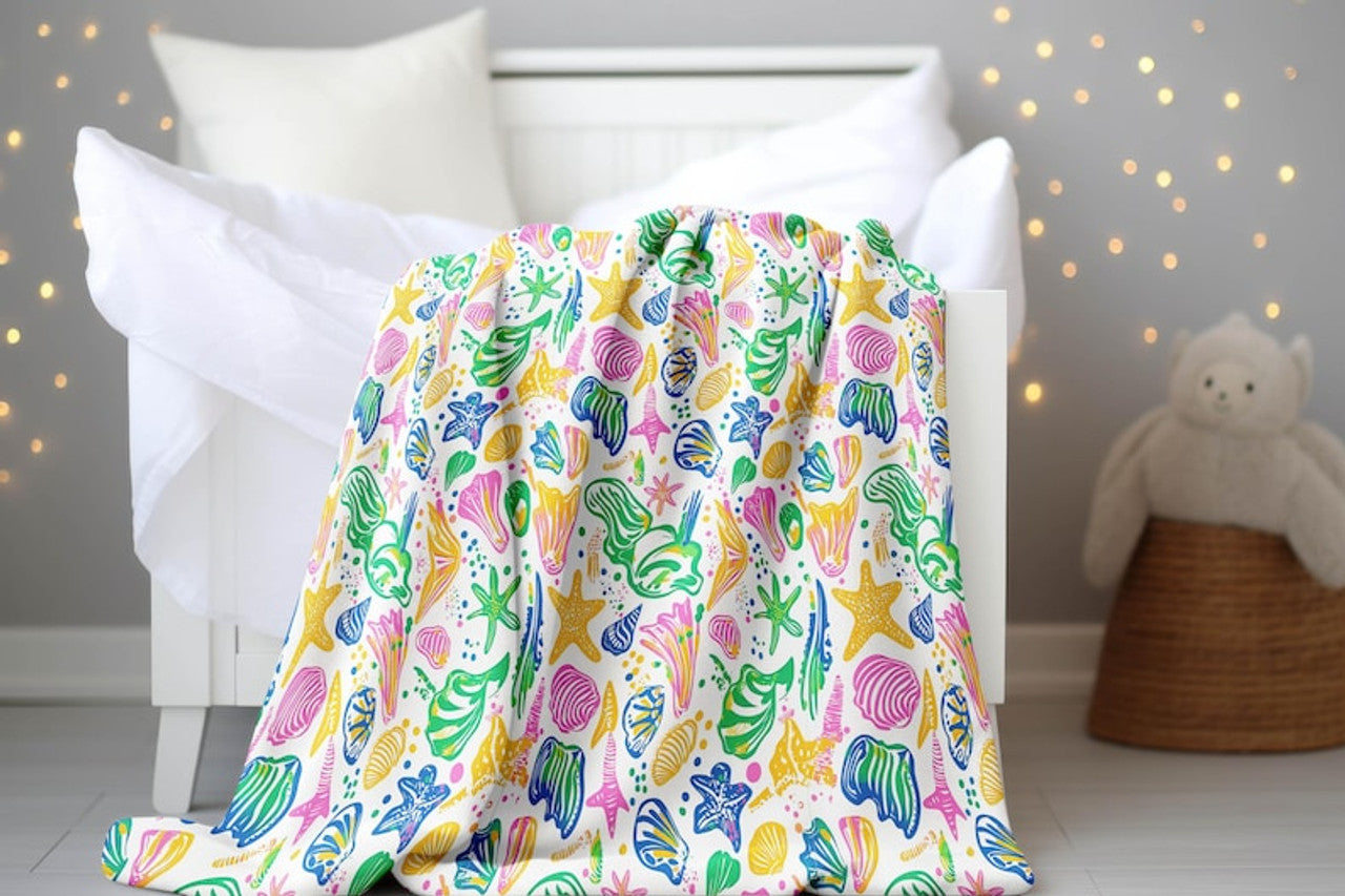 FUNSTUFFPRINT Mermaidcore Seashell Blanket, Ocean Keepsake Blanket, Summer Vibe Baby Swaddle, Baby Shower Gift, Childrens Kids Blankets