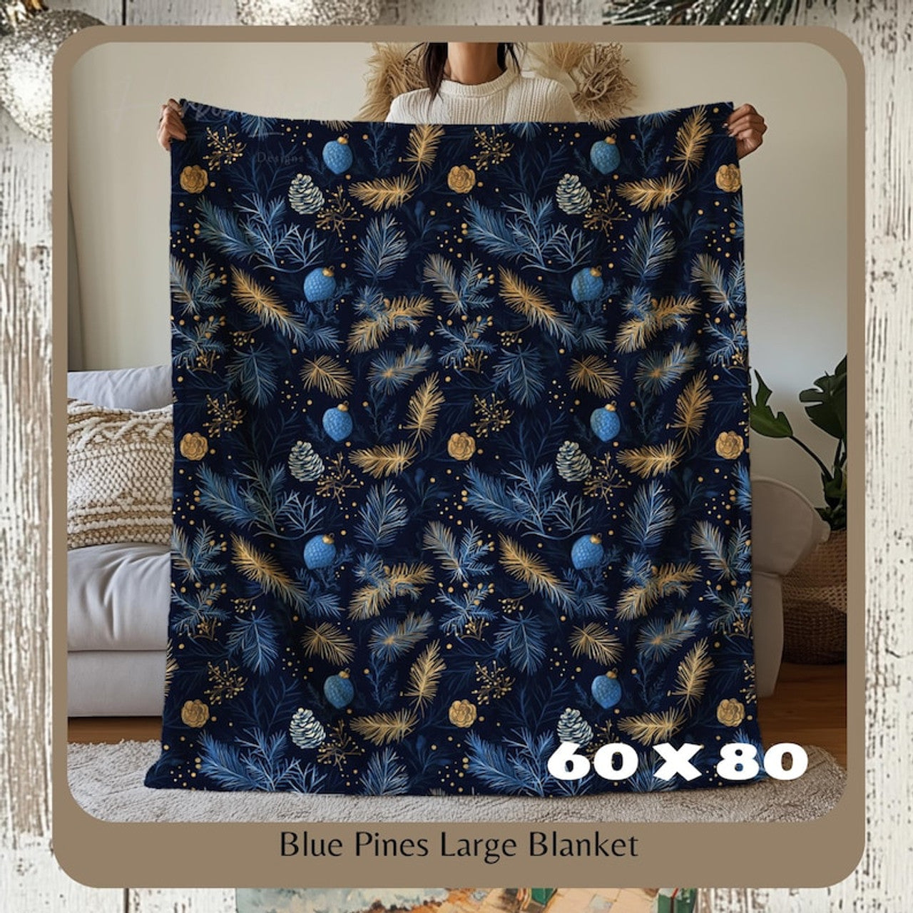 FUNSTUFFPRINT Merry & Bright Blanket, Christmas Cozy Decor for Winter Nights, Snuggle Up with Our Blue Christmas Plush Blanket