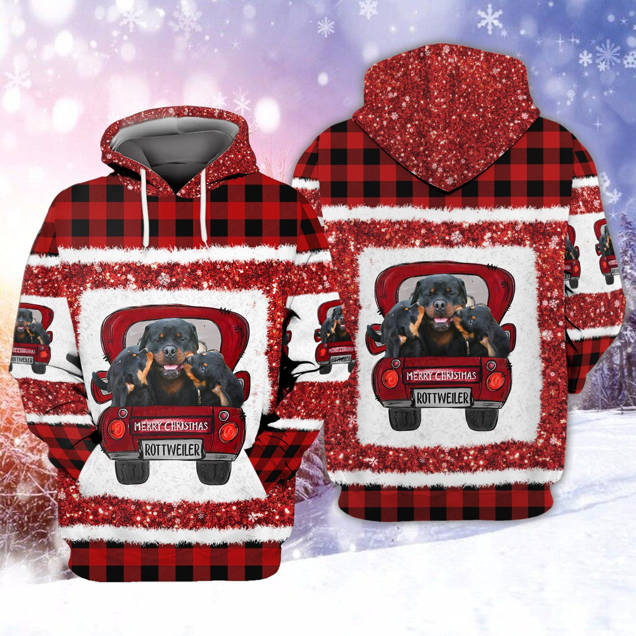 FUNSTUFFPRINT Merry Christmas with Rottweiler 3D Hoodie and Zip Hoodie