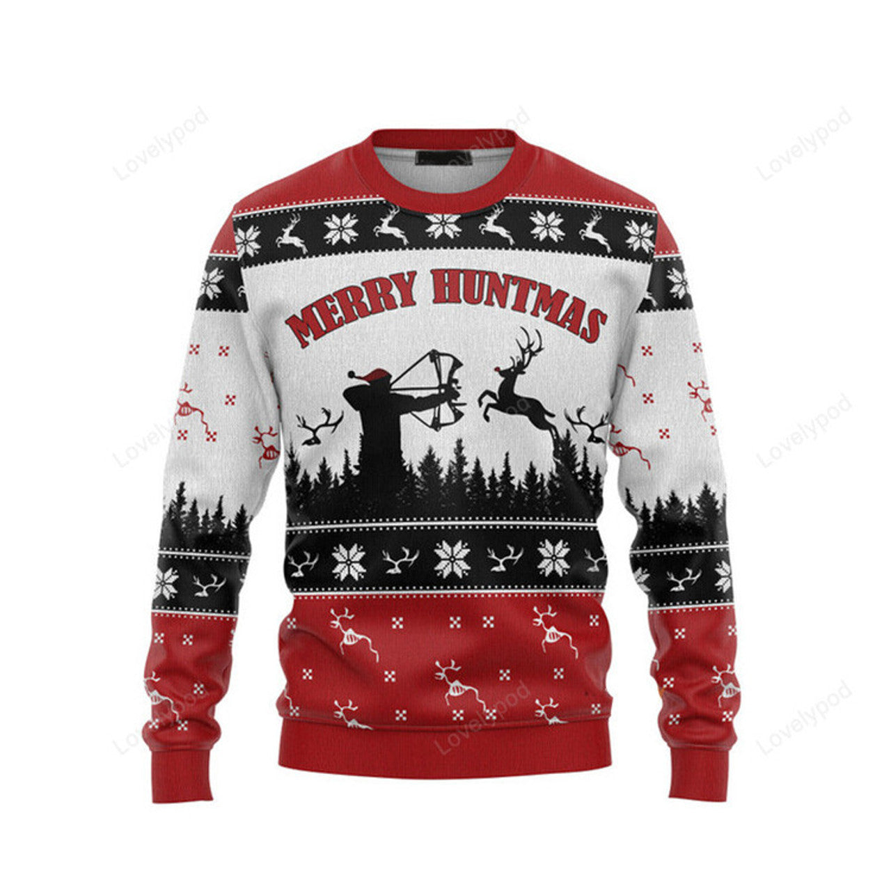 FUNSTUFFPRINT Merry Huntmas Hunting Ugly Christmas Sweater Ugly Sweater