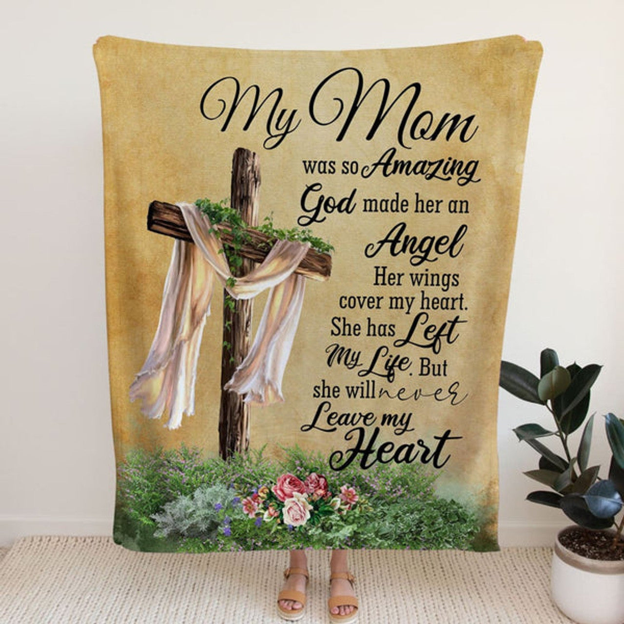 FUNSTUFFPRINT My Mom Was So Amazing God Made Her An Angel Fleece Blanket - Christian Blanket - Bible Verse Blanket