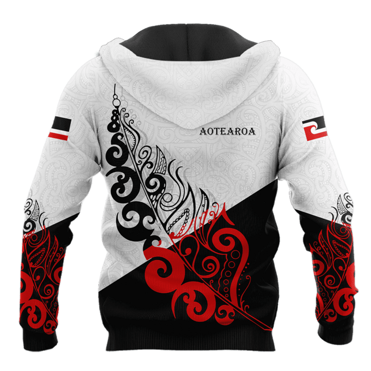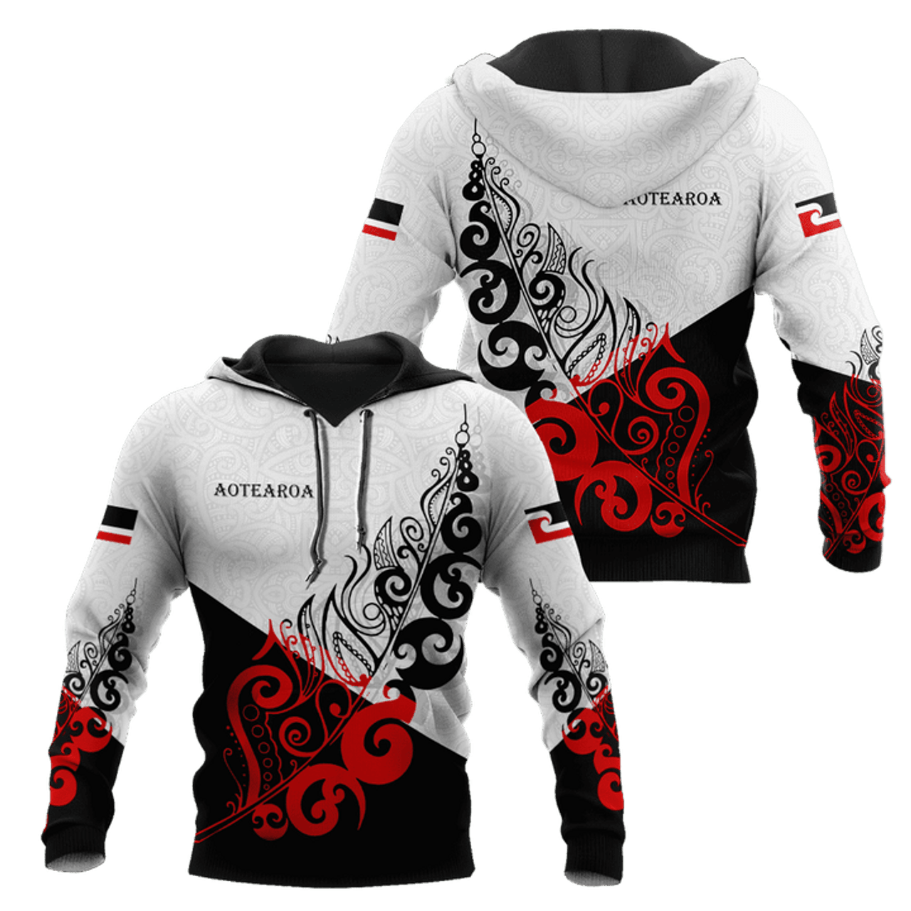 FUNSTUFFPRINT New Zealand Aotearoa Maori Fern Pattern 3D Hoodie and Zip Hoodie
