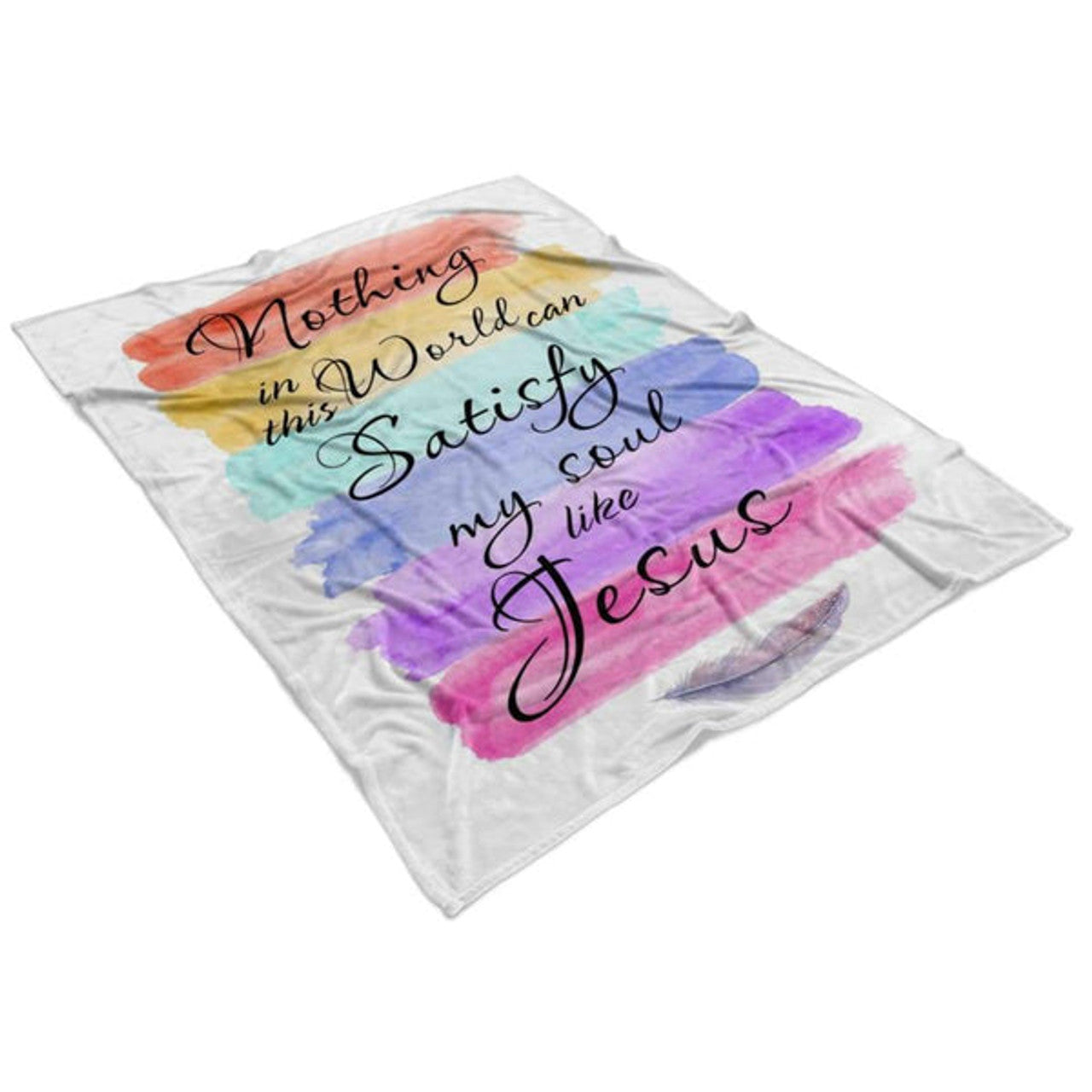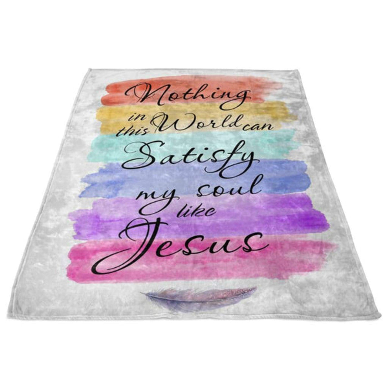 FUNSTUFFPRINT Nothing In This World Can Satisfy My Soul Like Jesus Fleece Blanket - Christian Blanket - Bible Verse Blanket