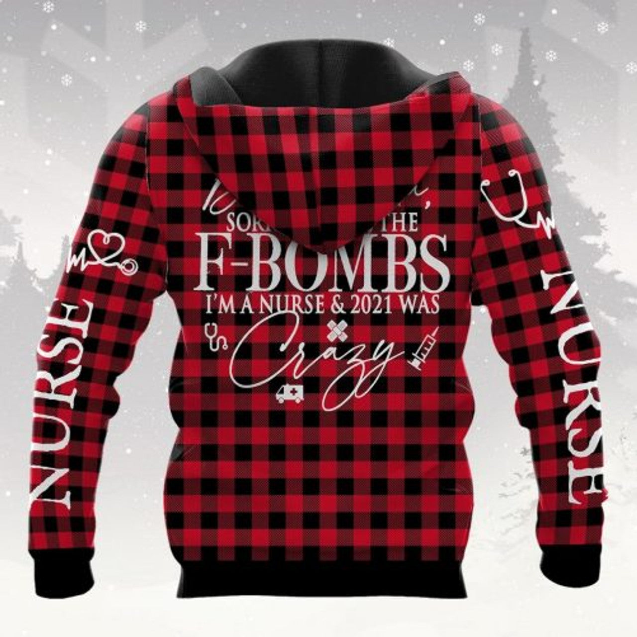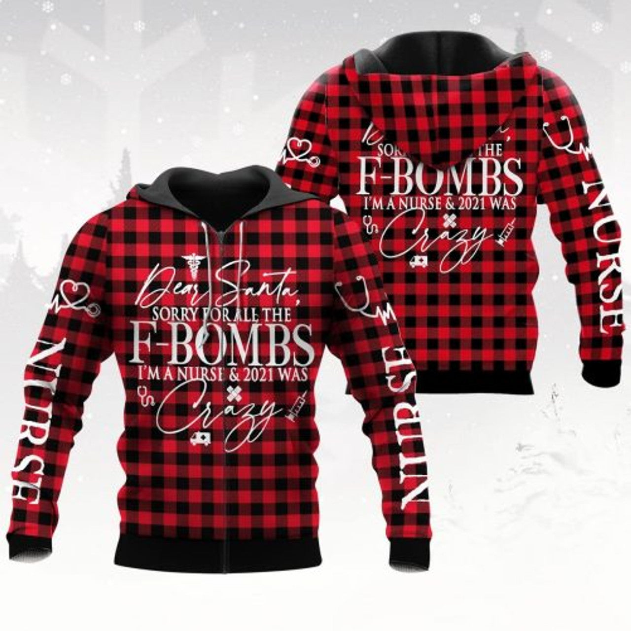 FUNSTUFFPRINT Nurse 3D Hoodie Gift For Christmas Dear Santa Sorry For All The F Bombs 2021 Was Crazy 3D Hoodie and Zip Hoodie