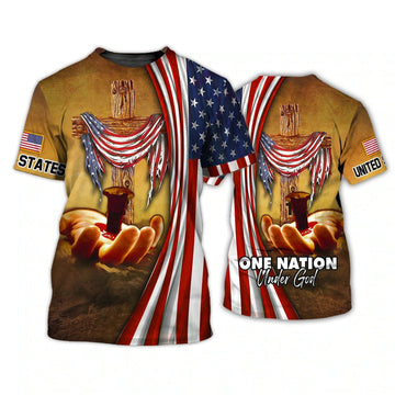 FUNSTUFFPRINT One Nation Under God 3D All Over PrinT-Shirt Bomber, Patriotic Independence Day United States Strong American 3D Shirts 3D T-shirt