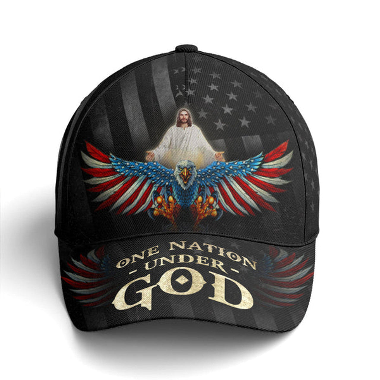 FUNSTUFFPRINT One Nation Under God America Eagle Baseball Cap