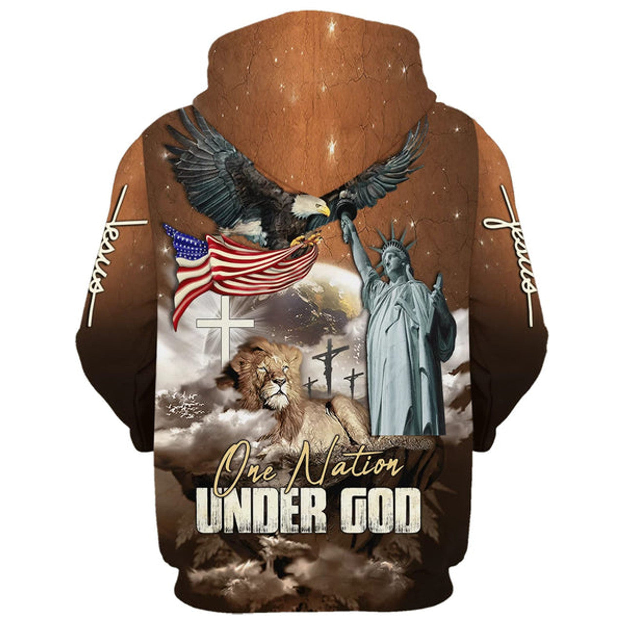 FUNSTUFFPRINT One Nation Under God Bald Eagle American Flag and Lion Hoodies Men & Women Christian 3D Hoodie and Zip Hoodie