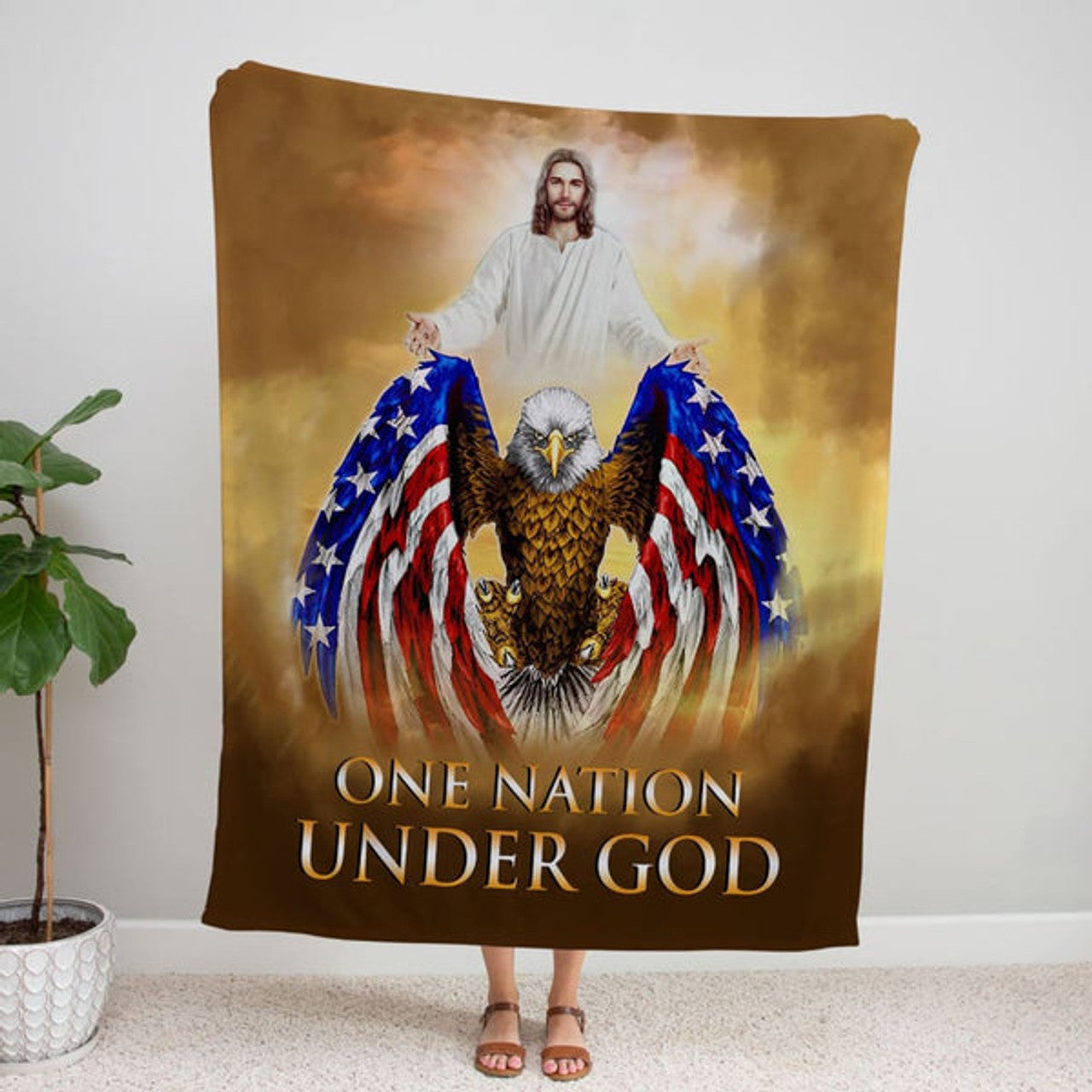 FUNSTUFFPRINT One Nation Under God Fleece Blanket - Christian Blanket - Bible Verse Blanket