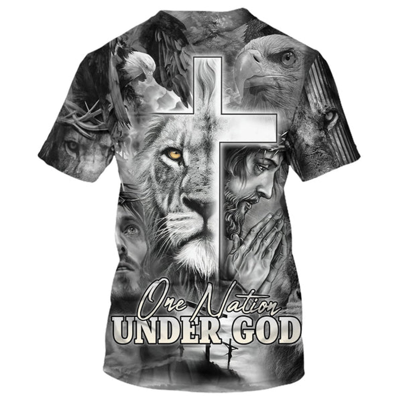 FUNSTUFFPRINT One Nation Under God Shirts - Jesus Prayer Lion And Eagle 3D All Over Printed Shirt for Men and Women 3D T-shirt