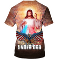 FUNSTUFFPRINT One Nation Under God Eagle Flag Pattern T-Shirt