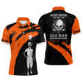 FUNSTUFFPRINT Orange And Black Mens Skull Golf Polo Shirts, Custom Golf Polos For Men, Halloween Golf Polo Shirt Size S-5XL