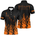 FUNSTUFFPRINT Orange flame golf skeleton custom black Mens golf Polo Shirt Size S-5XL