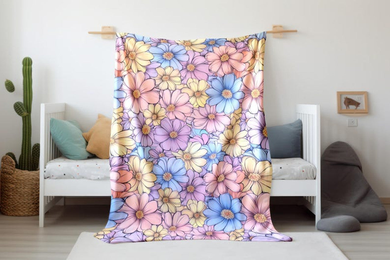 FUNSTUFFPRINT Pastel Floral Pattern Velveteen Baby Blanket, Whimsical Flowers Blanket Design, Sherpa Blanket Nursery Room Decor, Baby Girl Blanket