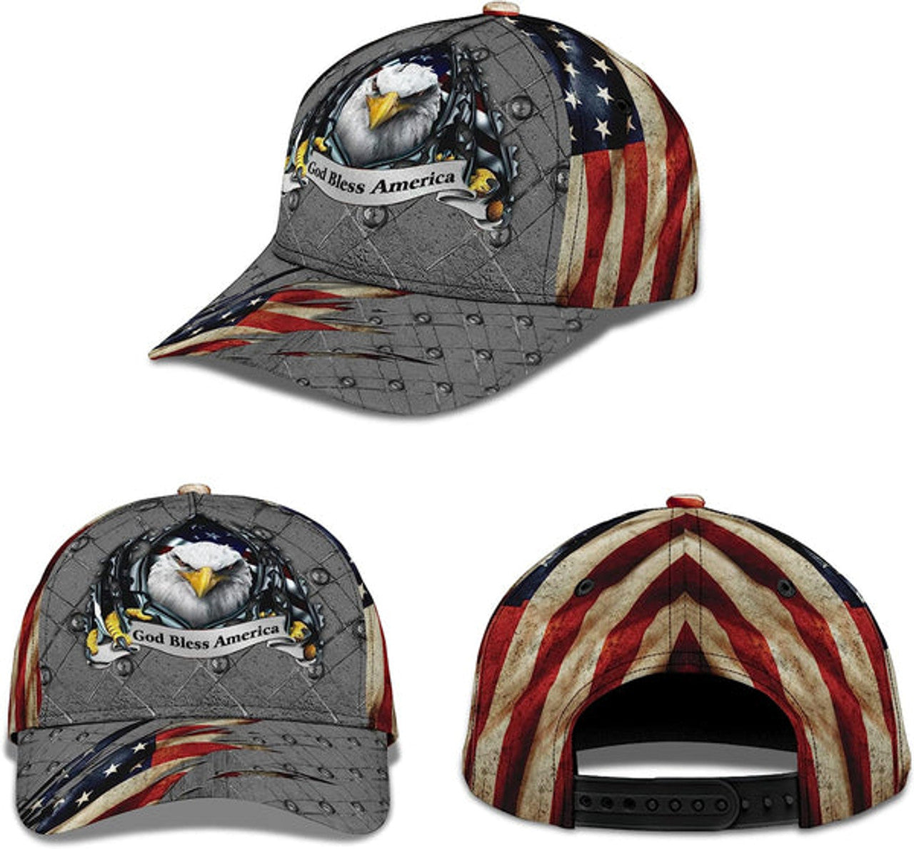 FUNSTUFFPRINT Patriotic Bald Eagle God Bless America All Over Print Baseball Cap - Christian Hats For Men Women