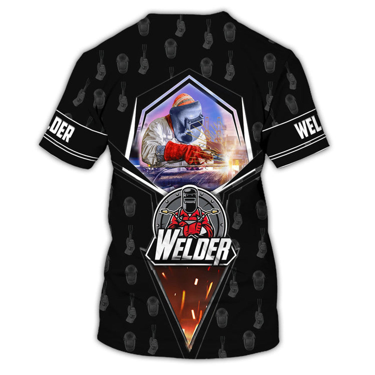 FUNSTUFFPRINT Personalized 3D All Over Print Welder T-Shirt Men, Gift To Welder Husband, Helmet and Weilding Plier 3D T-shirt