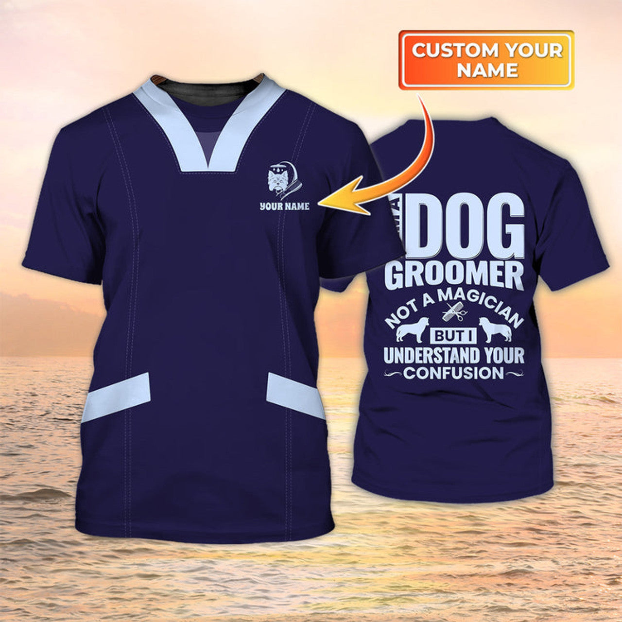 FUNSTUFFPRINT Personalized 3D All Over Printed Dog Groomer Shirt Grooming Uniform I Am A Dog Groomer Not A Magician 3D T-shirt