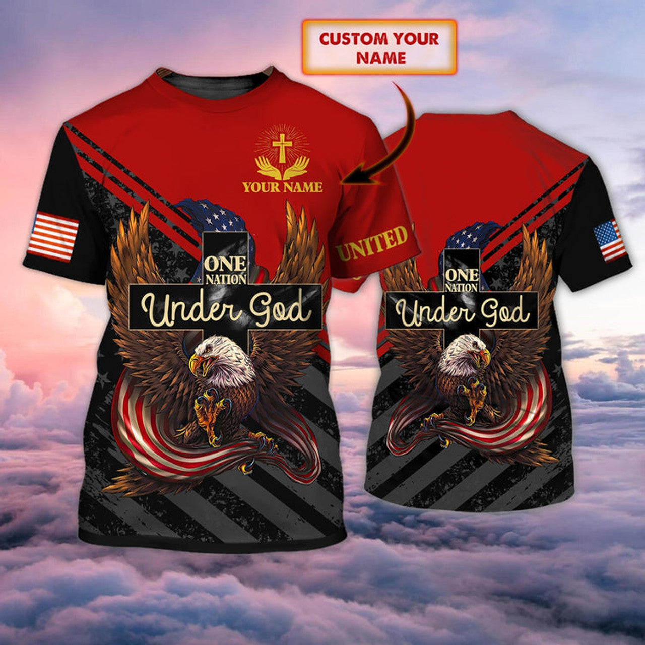 FUNSTUFFPRINT Personalized 4Th Of July 3D Full PrinT-Shirt, Patriotic American Eagle Tee 3D Shirts, One Nation Under God Shirts 3D T-shirt