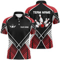 FUNSTUFFPRINT Personalized Black and Red Retro Bowling Polo Shirt Size S-5XL