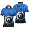 FUNSTUFFPRINT Personalized Blue Grunge 8 Ball Pool Men Billiards Polo Shirt Size S-5XL
