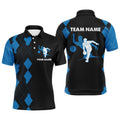 FUNSTUFFPRINT Personalized Bowling Shirt for Men, Custom Name Blue&Black Polo Bowler Team Shirt for Bowling Lover Polo Shirt Size S-5XL