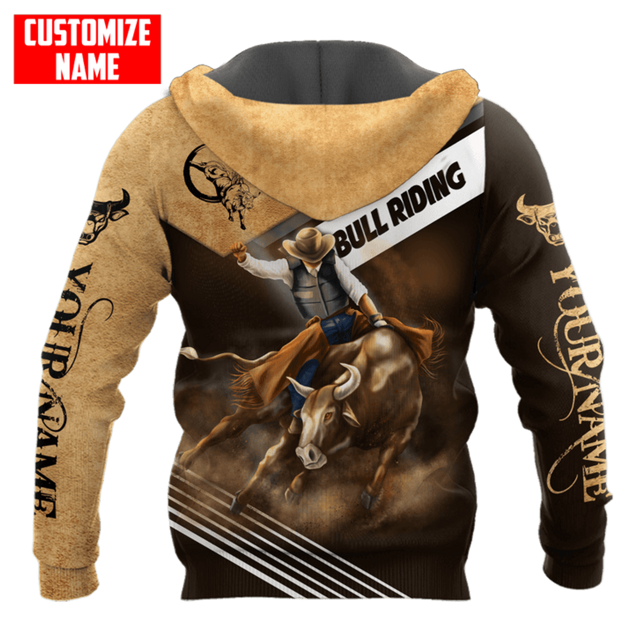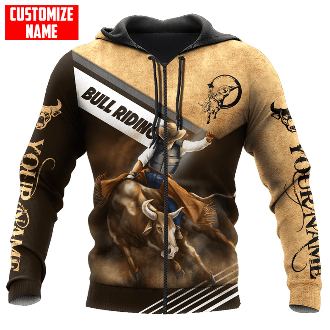 FUNSTUFFPRINT Personalized Bull Riding New Brown 3D Hoodie and Zip Hoodie