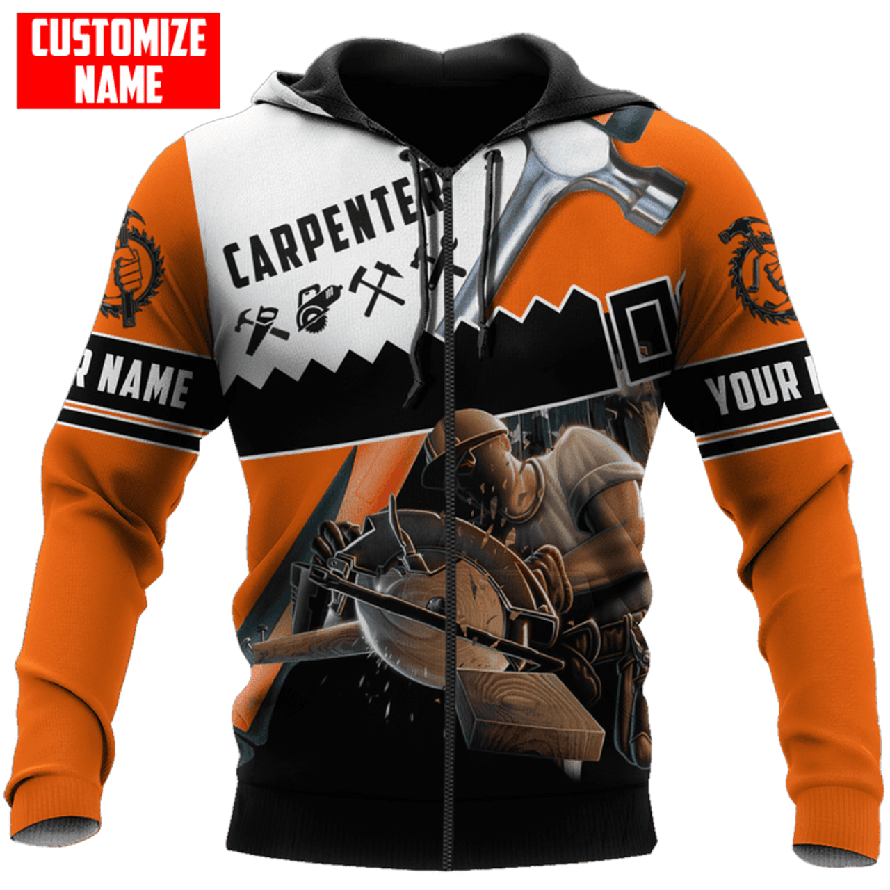 FUNSTUFFPRINT Personalized Carpenter Orange Tool 3D Hoodie and Zip Hoodie