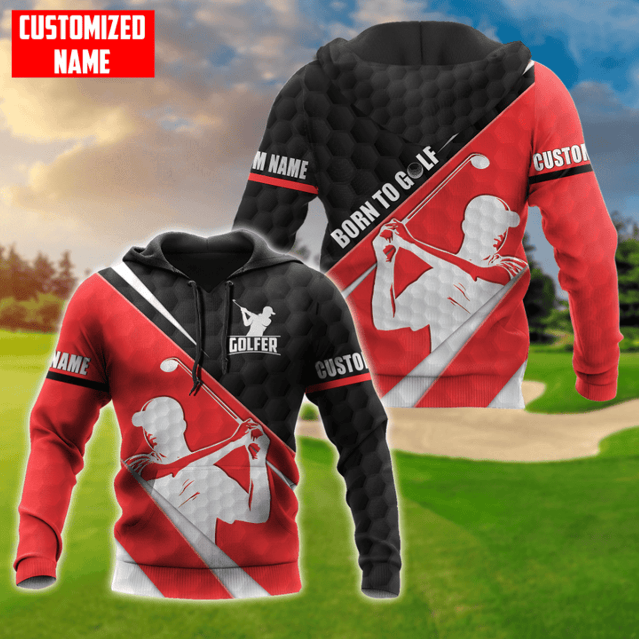 FUNSTUFFPRINT Personalized Golf Born To Golf 3D Hoodie and Zip Hoodie