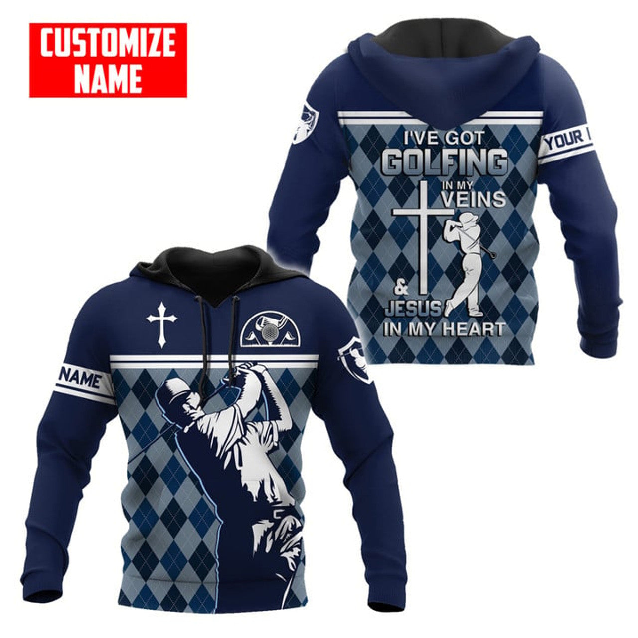 FUNSTUFFPRINT Personalized I've Got Golfing In My Veins Printed Combo 3D Hoodie and Zip Hoodie