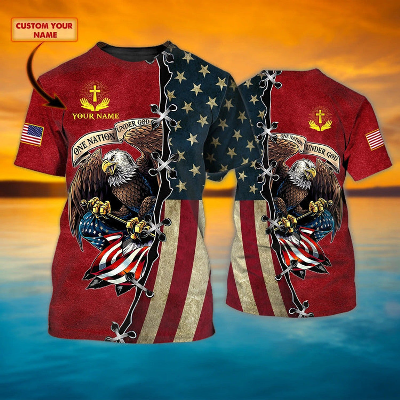 FUNSTUFFPRINT Personalized Jesus Eagle 3D Full PrinT-Shirt 4Th Of July American Independence Day 3D Shirts With Name 3D T-shirt