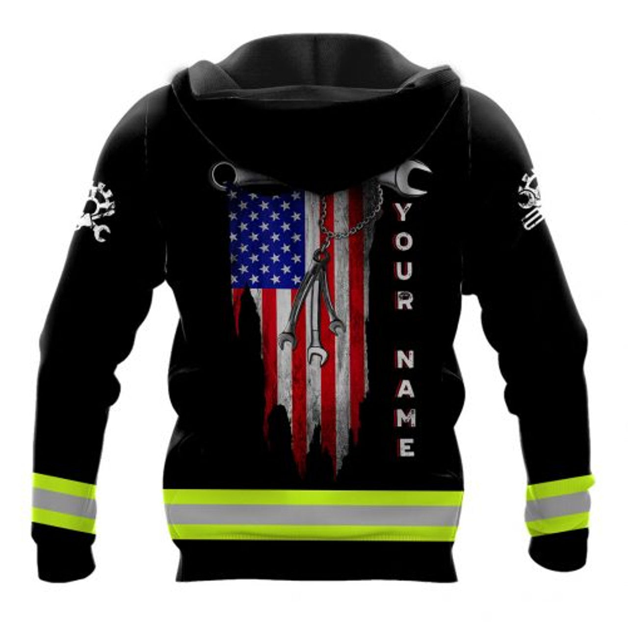 FUNSTUFFPRINT Personalized Mechanic 3D Hoodie American Flag Black 3D Hoodie and Zip Hoodie