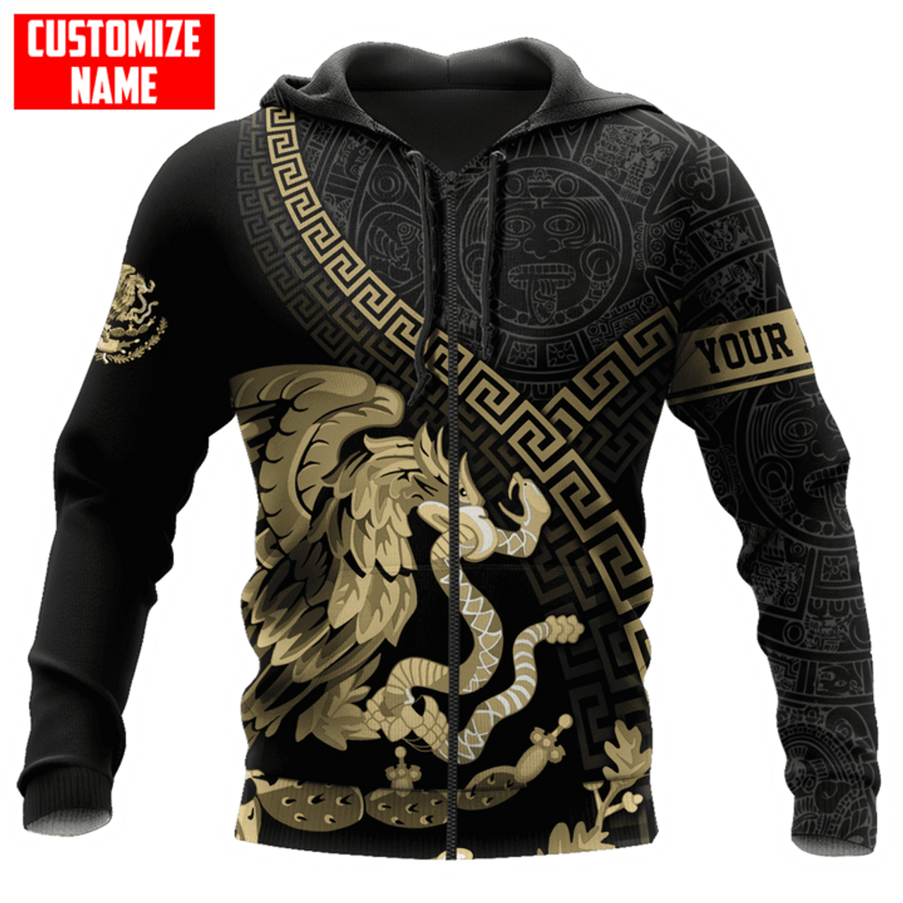 FUNSTUFFPRINT Personalized Mexican Aztec Gold 3D Hoodie and Zip Hoodie