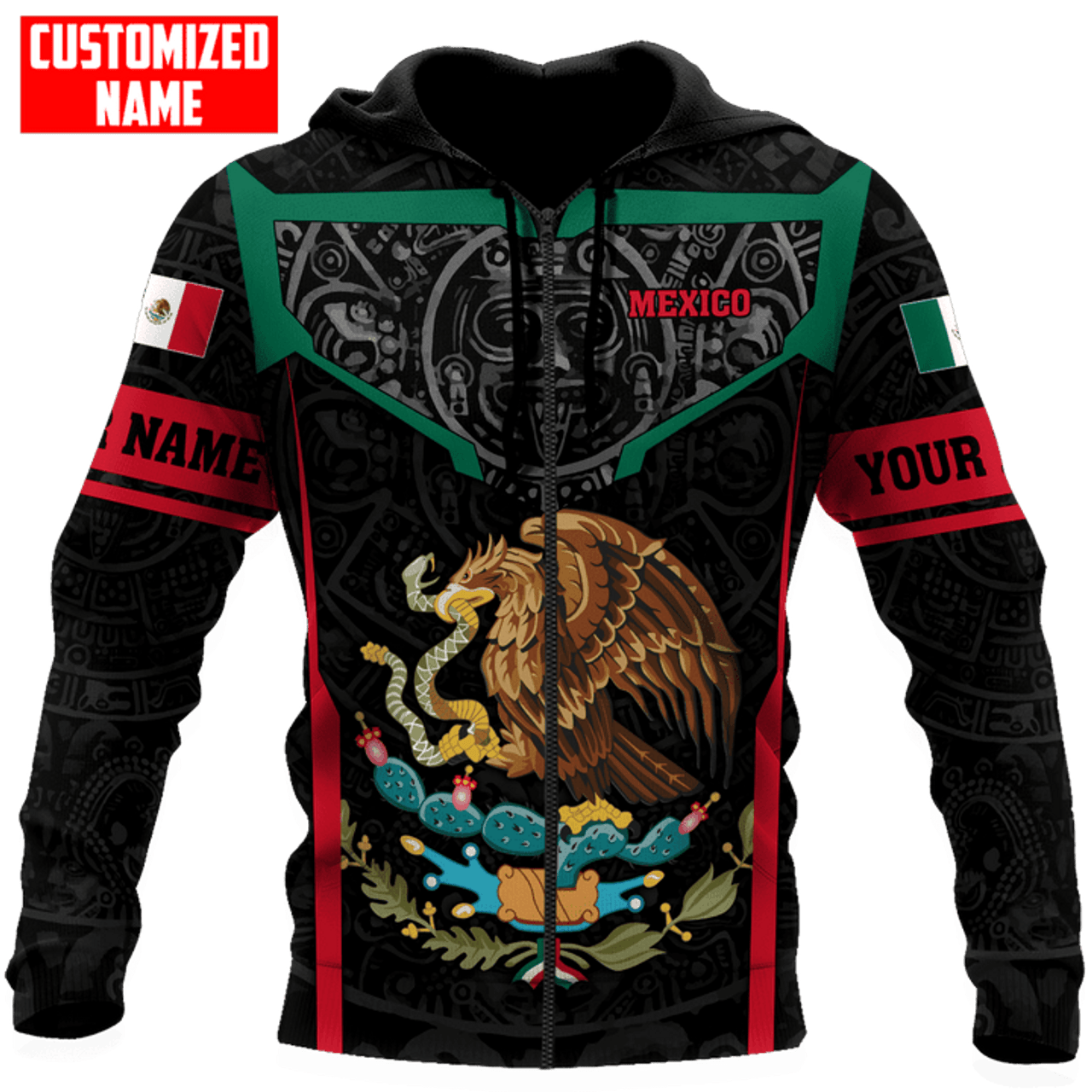 FUNSTUFFPRINT Personalized Mexico Aztec Calendar Frame Unisex 3D Hoodie and Zip Hoodie