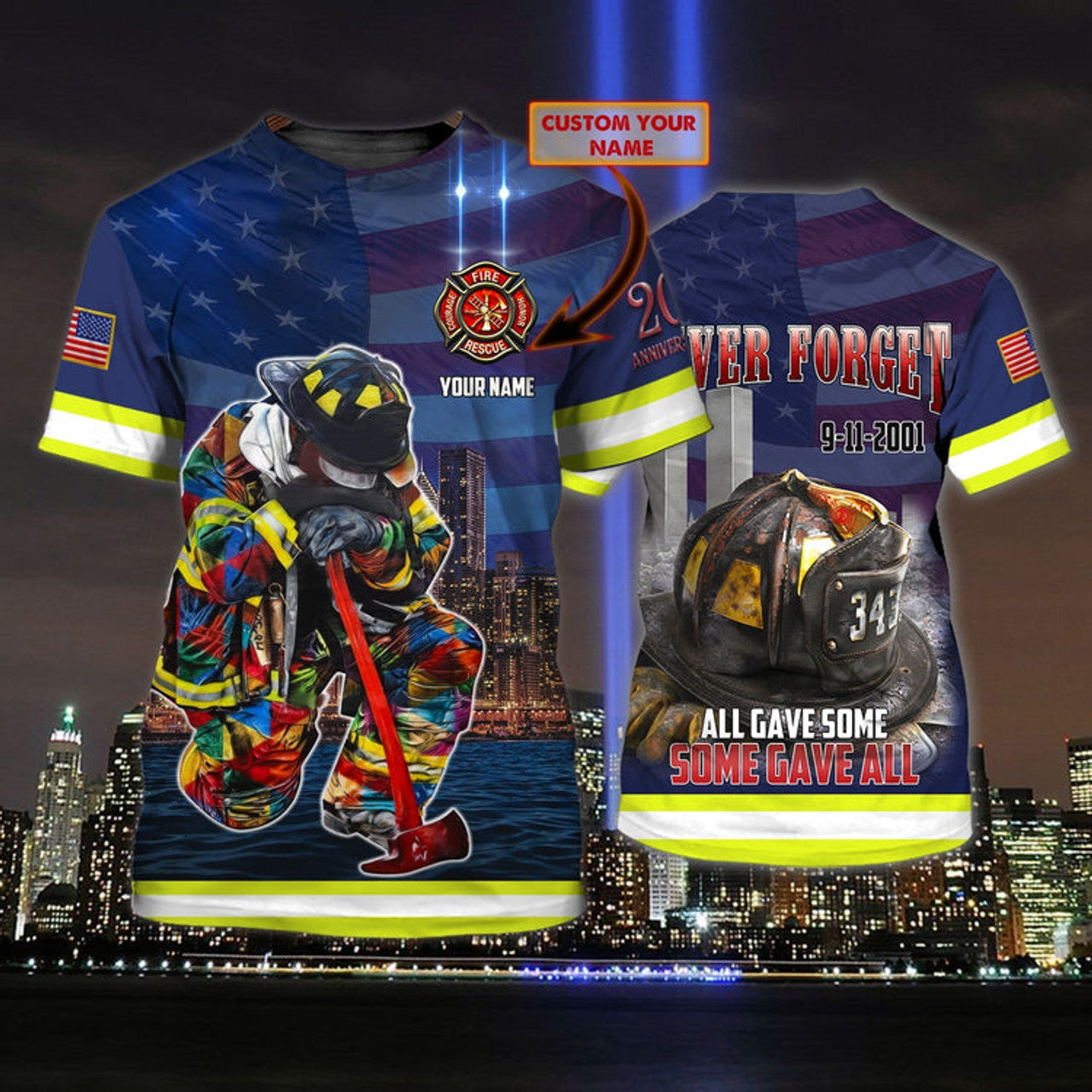 FUNSTUFFPRINT Personalized Name 3D T-Shirt 9 11Never Forget Firefighter 3D Shirt, All Gave Some Some Gave All 3D T-shirt