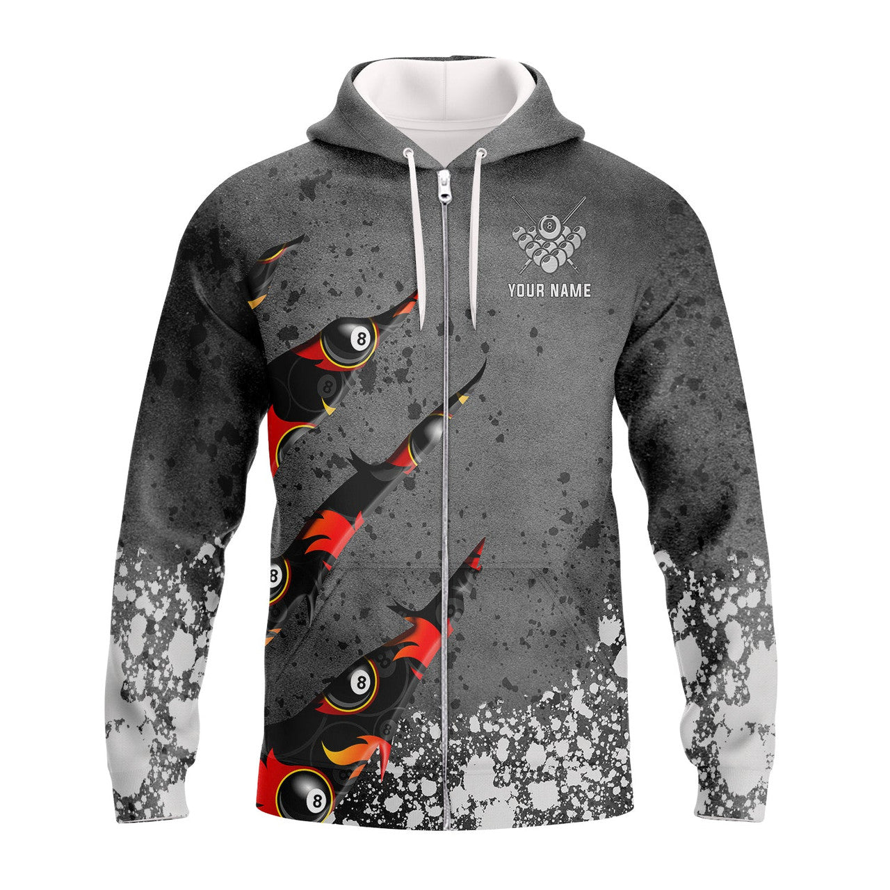 FUNSTUFFPRINT Personalized Name Billiard Grey 3D Hoodie and Zip Hoodie