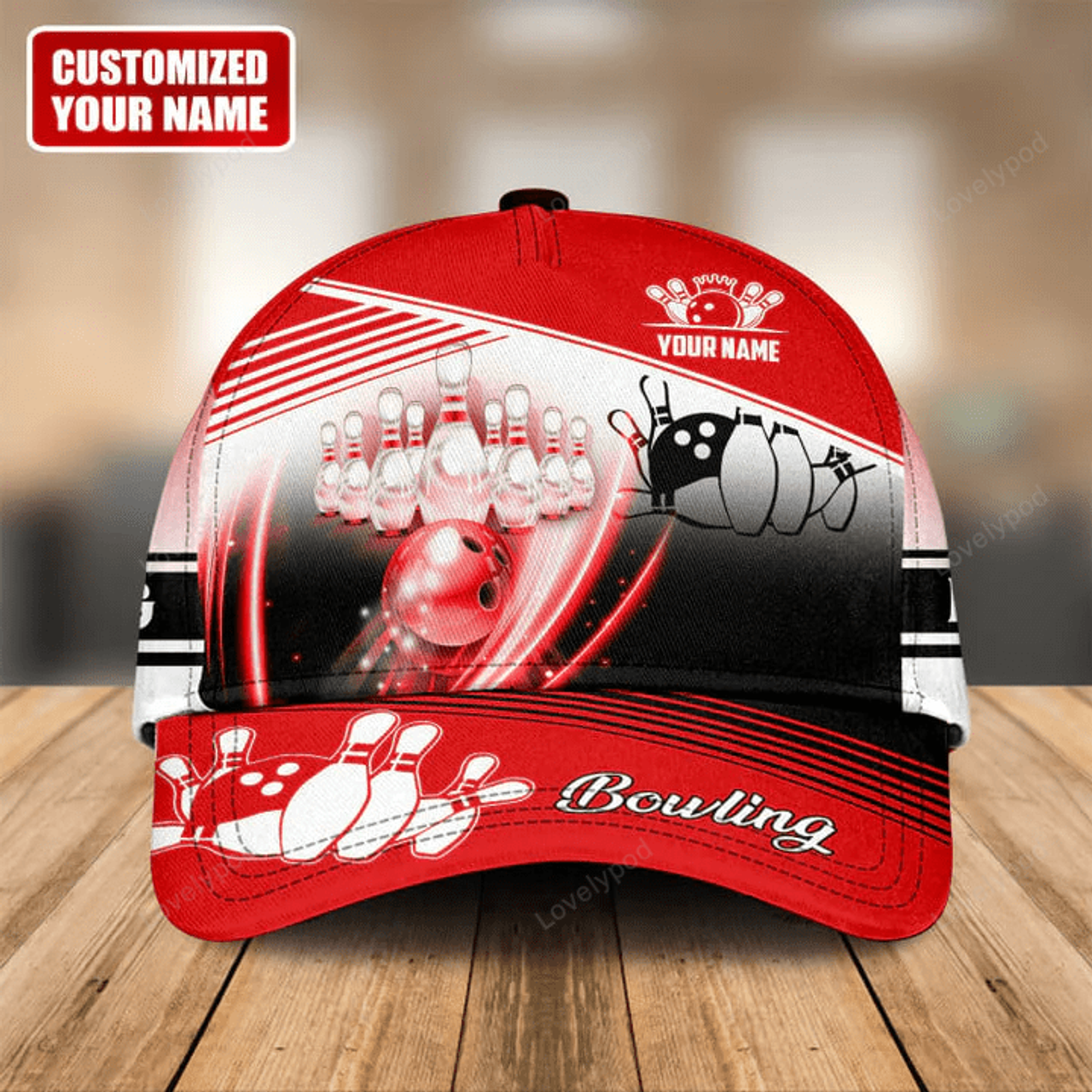 FUNSTUFFPRINT Personalized Name Bowling Full color Classic Cap, Bowling hat for men, Gift for Bowling player