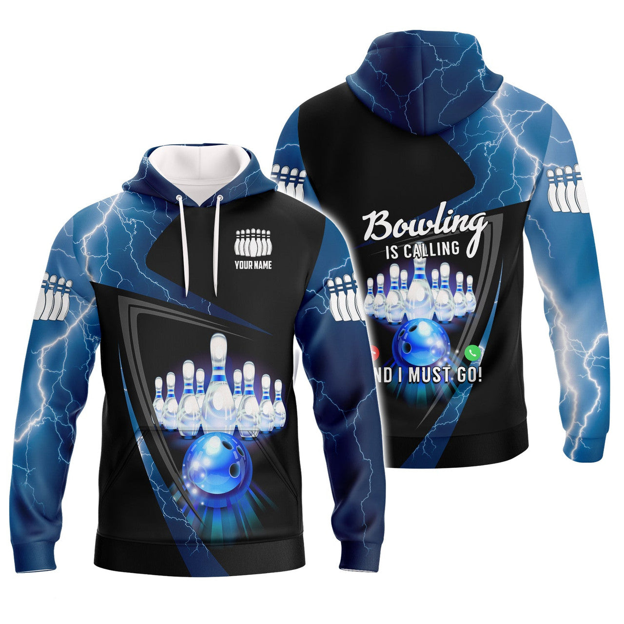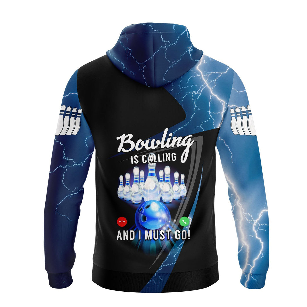 FUNSTUFFPRINT Personalized Name Bowling Is Calling And I Must Go 3D Hoodie and Zip Hoodie