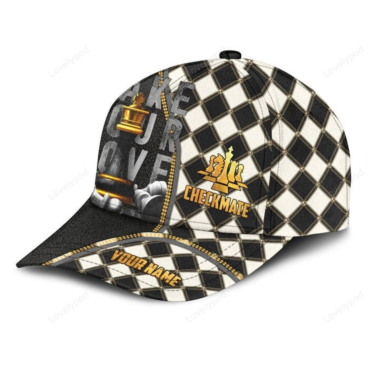 FUNSTUFFPRINT Personalized Name Chess Classic Cap for Men, Chess cap hat, Gift for Chess player