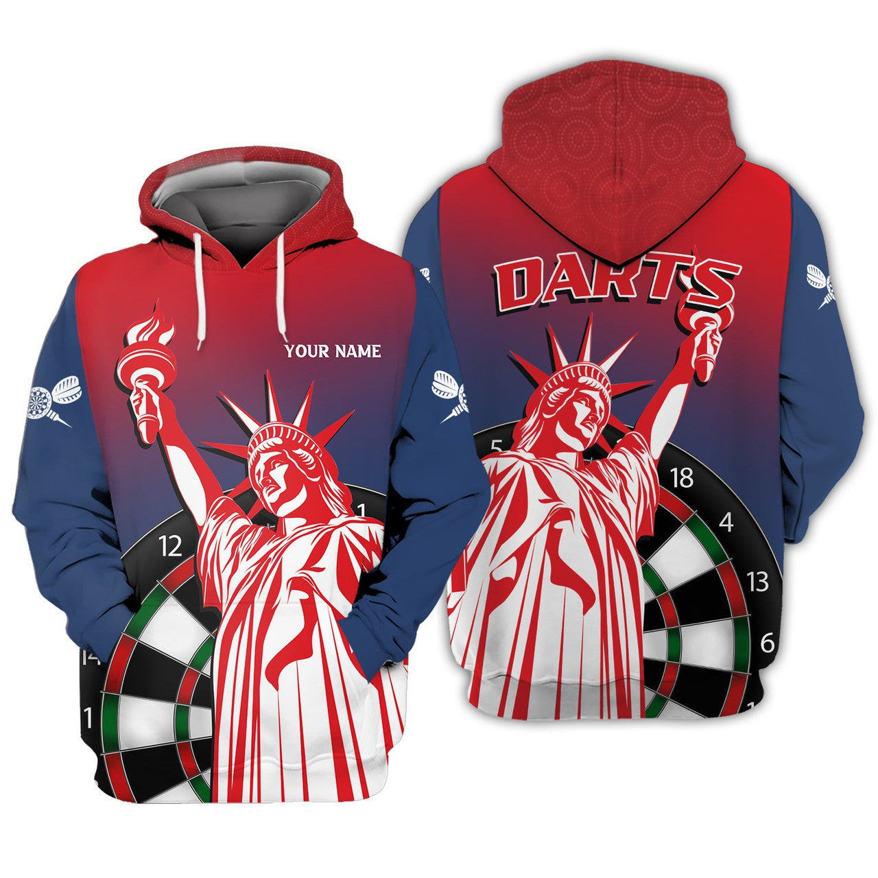 FUNSTUFFPRINT Personalized Name Dart USA 3D Hoodie and Zip Hoodie