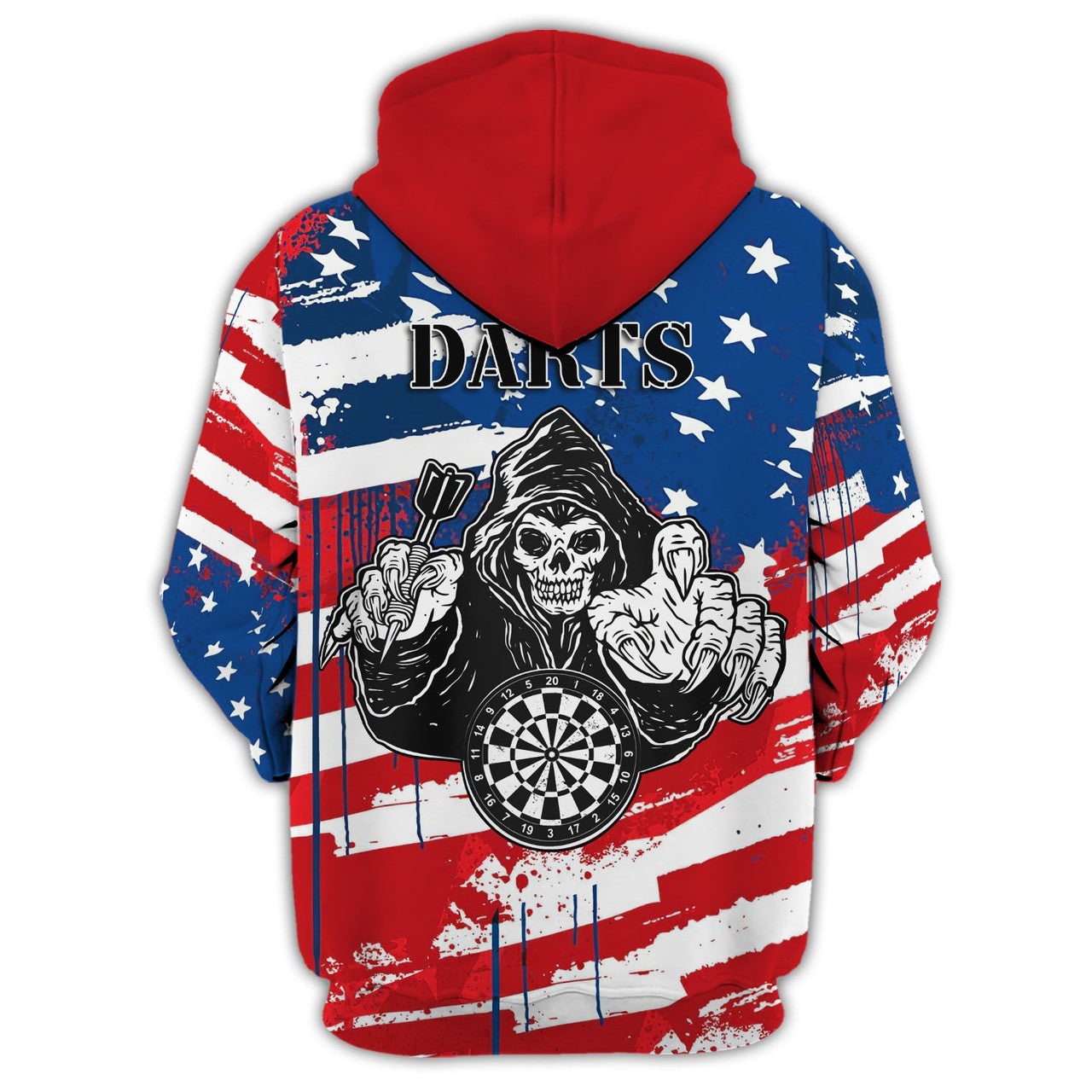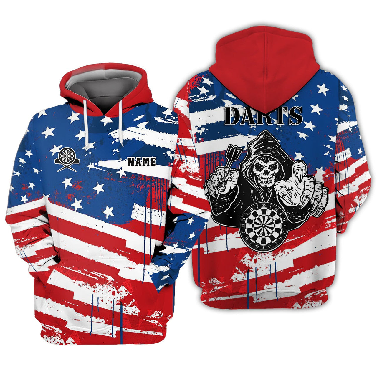 FUNSTUFFPRINT Personalized Name Darts Skeleton USA 3D Hoodie and Zip Hoodie