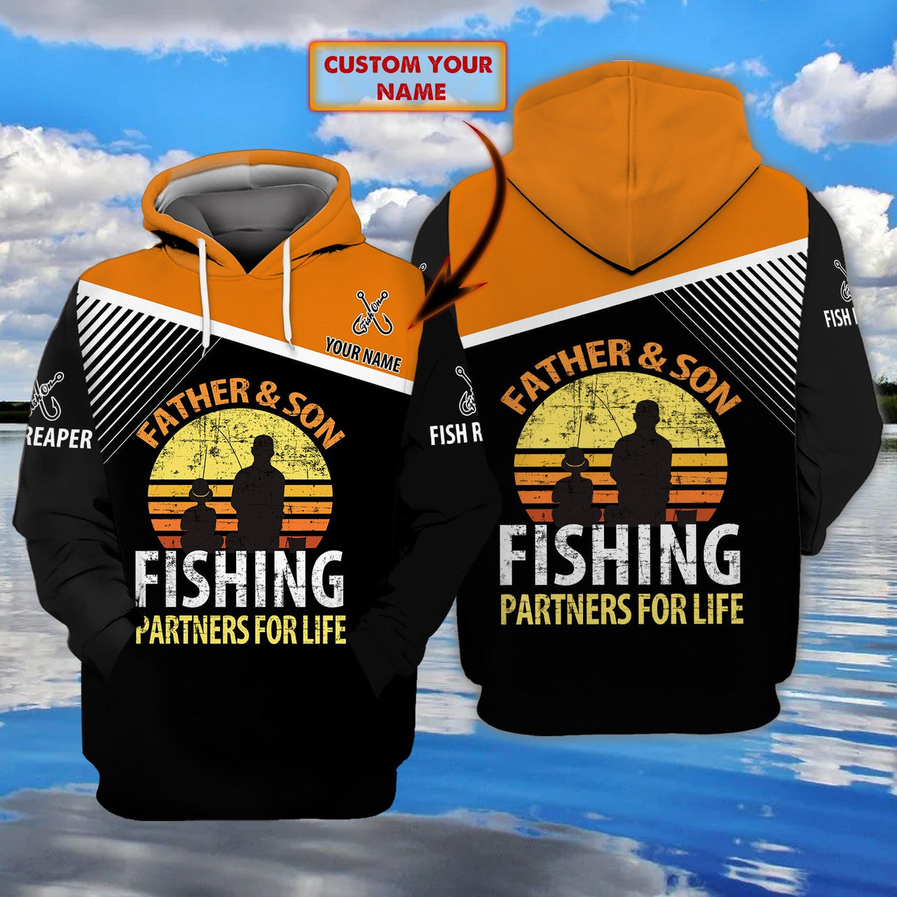 FUNSTUFFPRINT Personalized Name Father And Son Fishing - 3D Hoodie and Zip Hoodie