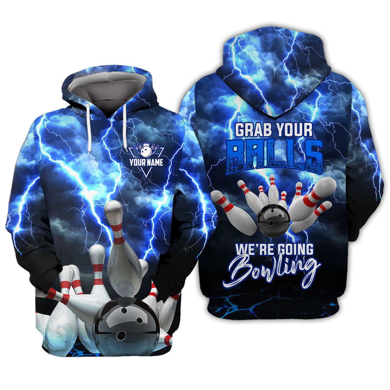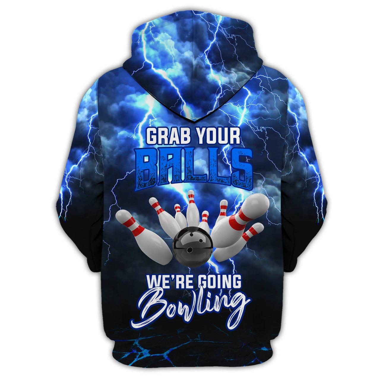 FUNSTUFFPRINT Personalized Name Grab Your Balls We're Going Bowling 3D Hoodie and Zip Hoodie