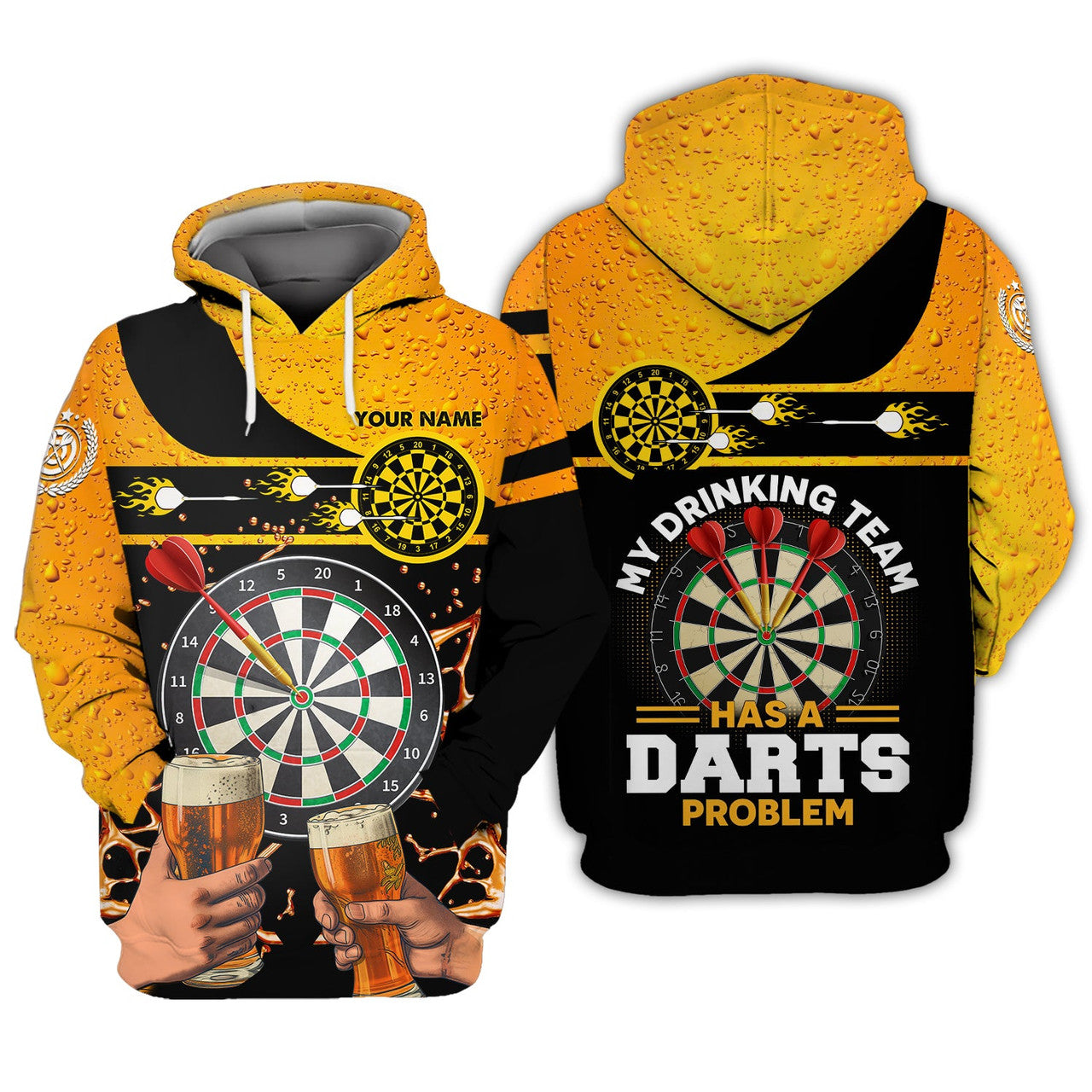 FUNSTUFFPRINT Personalized Name My Drinking Team Has A Darts Problem 3D Hoodie and Zip Hoodie