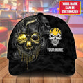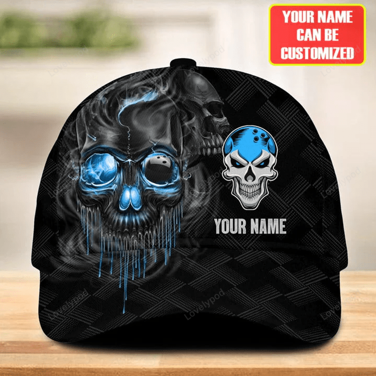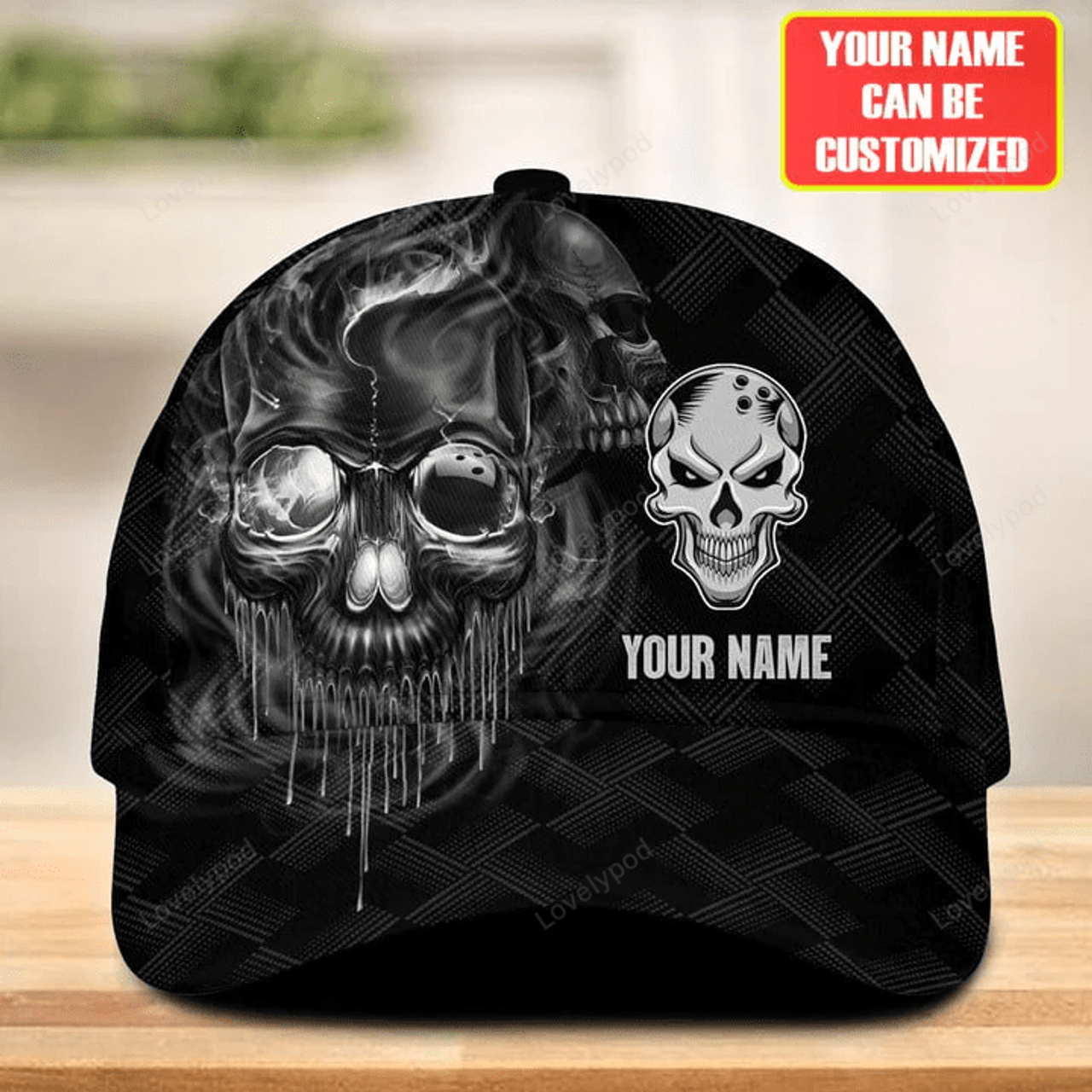 FUNSTUFFPRINT Personalized Name Orange Skull Bowling Classic Cap for Men, Bowling cap hat, Gift for Bowling player