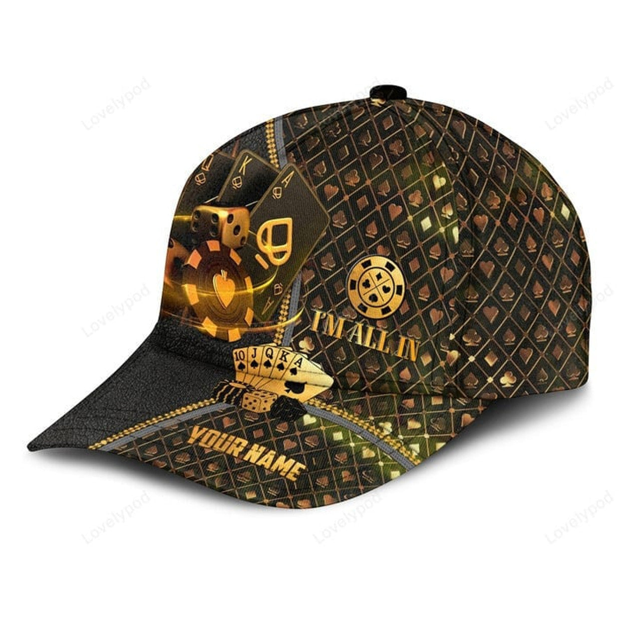 FUNSTUFFPRINT Personalized Name Poker Classic Cap, Poker hat, Gift for Poker player