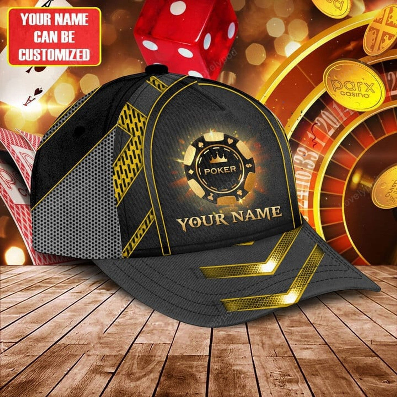 FUNSTUFFPRINT Personalized Name Poker Gold Classic Cap, Poker hat for men and women